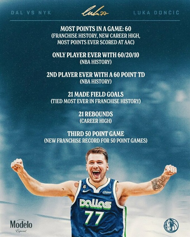 Additionally, Doncic updated some personal and club accomplishments. Luka’s previous scoring record was 51 points against the Clippers (February 10, 2022). He made 20 rebounds in a game against Sacramento (August 4, 2020).