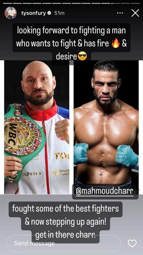 He fought some of the best fighters. Now he will perform again. Get in the ring Charr,” Fury wrote.