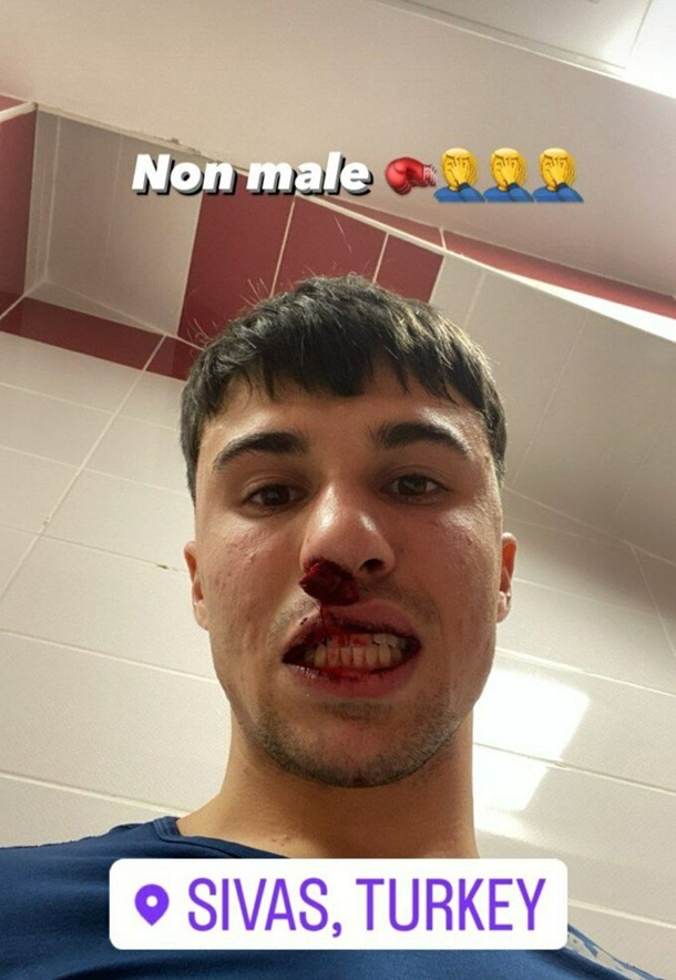 After the game, Alessandro Bianco posted the result of an “encounter” with an aggressive fan, captioning the photo “not a man”.
