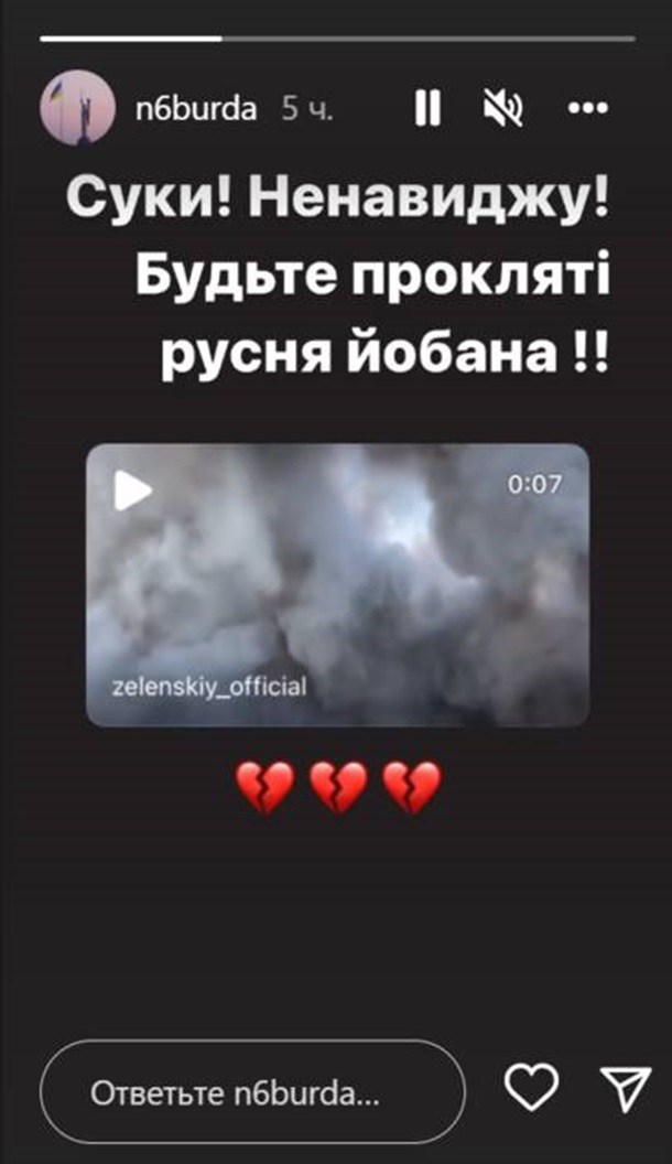 The athletes also reacted to the brutality of the invaders. Dynamo Kyiv defender Nikita Burda could not contain his emotions in his Instagram Stories.