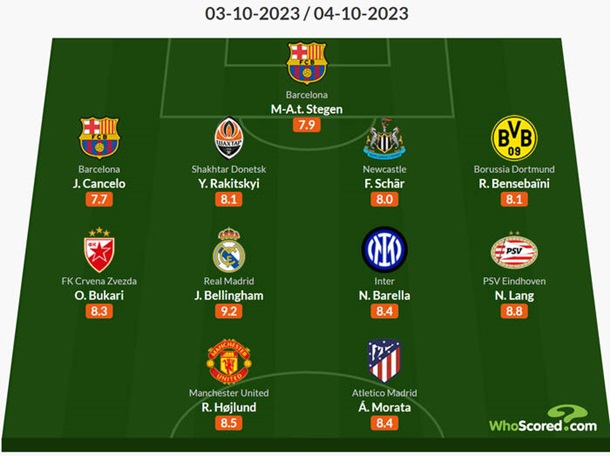 Interestingly, eleven different sides see their players featured in our XI, with Jude Bellingham standing out as our #UCL Player of the Week. 👑 pic.twitter.com/KF99yTsZer