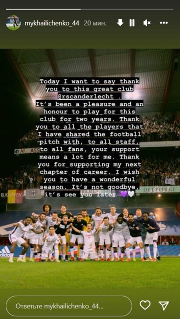 Thank you to all the players with me on the football field, to all the staff, to all the fans – your support means a lot to me. Thank you for supporting my next chapter in my career. I wish you a good time. This is not goodbye, see you later,” wrote Mikhailichenko.