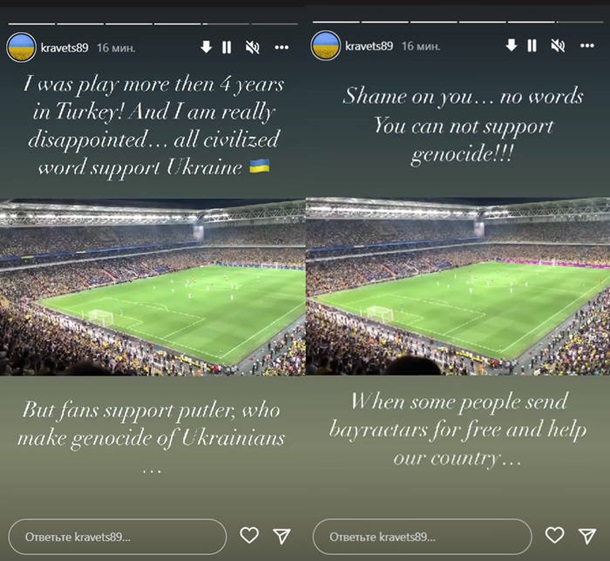 Kravets, who spent four years of his career in the Turkish championship, strongly condemned such actions.