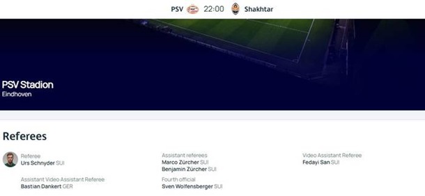 According to UEFA’s official website, a Swiss team of referees led by Urs Schnyder was appointed for this match.
