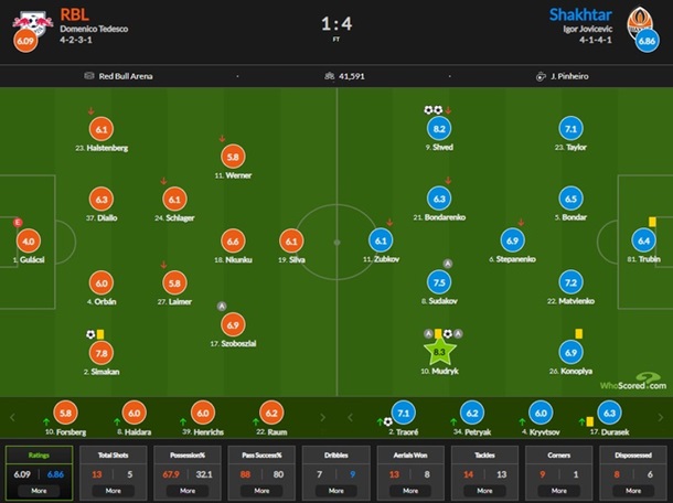 Mykhailo Mudryk was the best player of the match between Shakhtar and Leipzig. So say the experts of the authoritative publication WhoScored, who put their scores on the participants of the match.