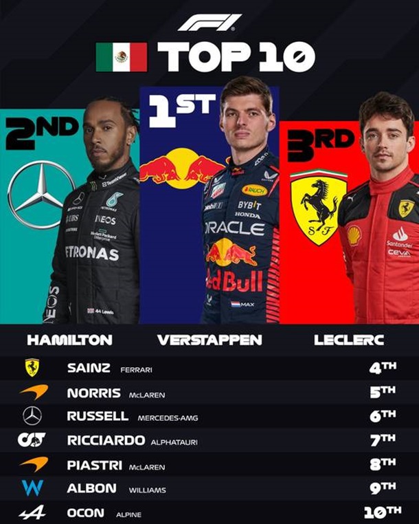 Final classification of the Mexican Grand Prix
