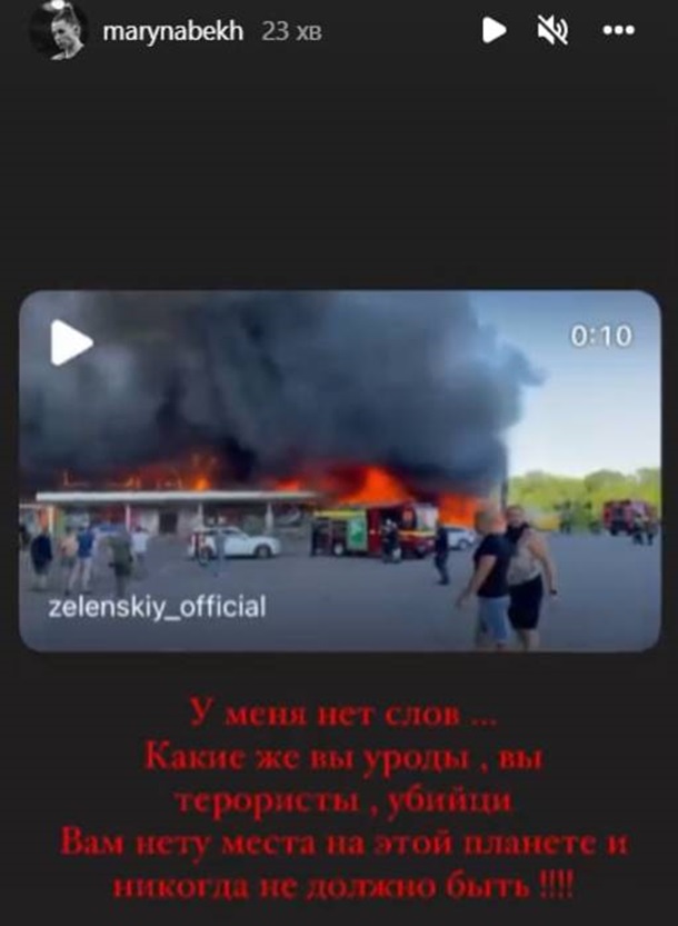 “I have no words. What freaks, terrorists, murderers you are. You have no place on this planet and never should,” Beh-Romanchuk wrote on Instagram Stories.