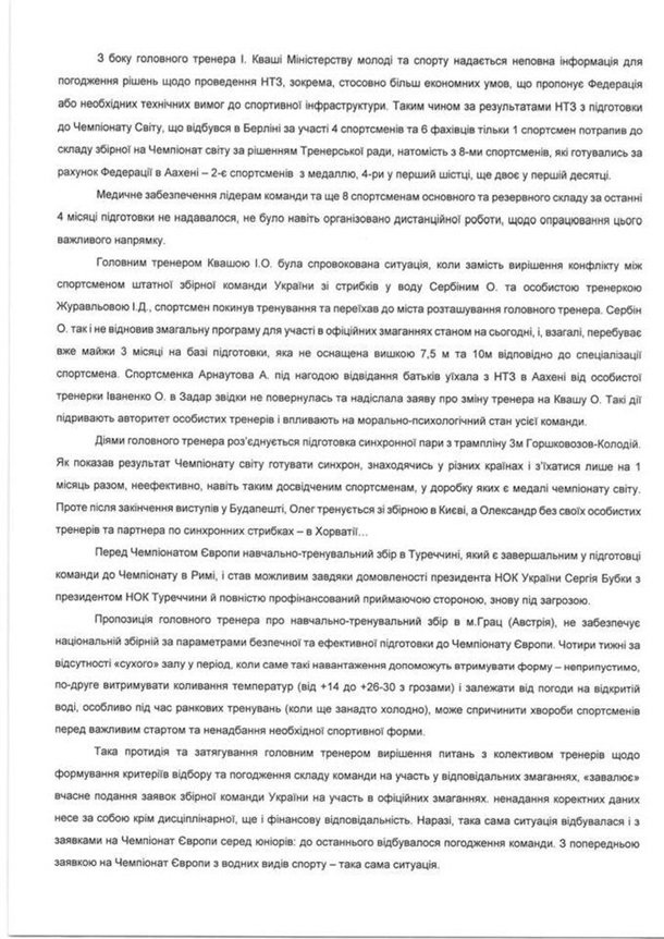 So the letter said Kvasha, who was appointed with a winter scandal to the post of national team coach, allegedly due to personal conflicts, did not include some athletes, especially Alexei Sereda, in the camp of training.