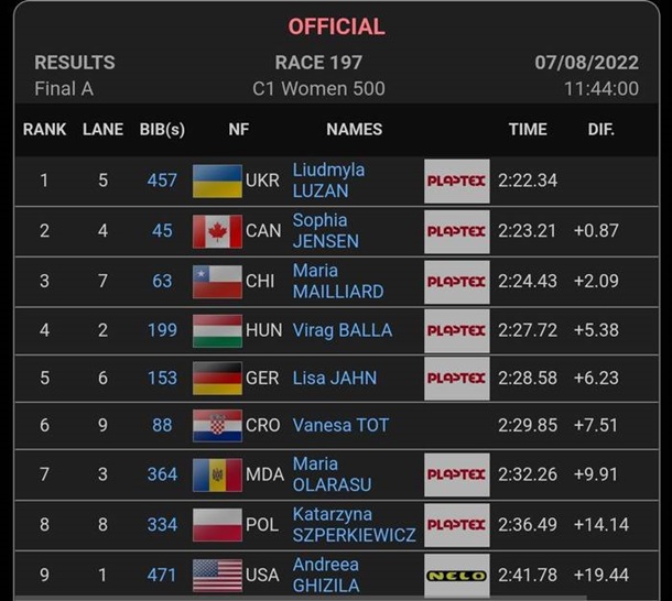 Ludmila Luzan won again at the 2022 World Rowing Championships, held in Canada. This time, the Ukrainian athlete was unmatched in the canoe single competition at a distance of 500 meters.
