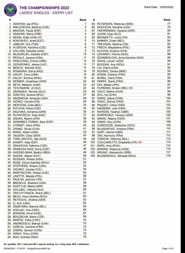 The Ukrainian got number 27 here. Note that Kalinina has not been seeded in Grand Slam tournaments in her career before.