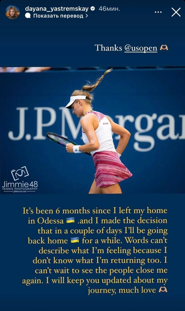 “It’s been 6 months since I left my home in Odessa. And I decided that in a few days I’m going home for a while. Words can’t describe how I feel. I can’t wait to see people near mine. I will keep you posted on my trip, I love you!” Yastremska wrote.